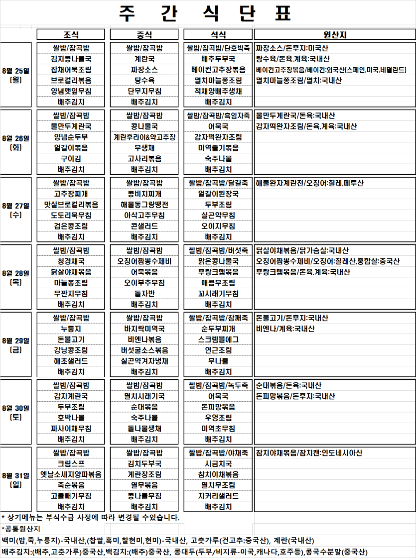 25년 08월 25 일 ~ 25년 08월 31일 식단안내입니다. 페이지 정보 작성자 최고관리자 댓글 0건 조회 367회 작성일 25-08-22 09:42 목록 본문 25년 08월 25 일 ~ 25년 08월 31일 식단안내입니다. 이전글25년 08월 25 일 ~ 25년 08월 31일 식단안내입니다. 25.08.22 다음글25년 08월 18 일 ~ 25년 08월 24일 식단안내입니다. 25.08.14 댓글 0 댓글목록 등록된 댓글이 없습니다.
